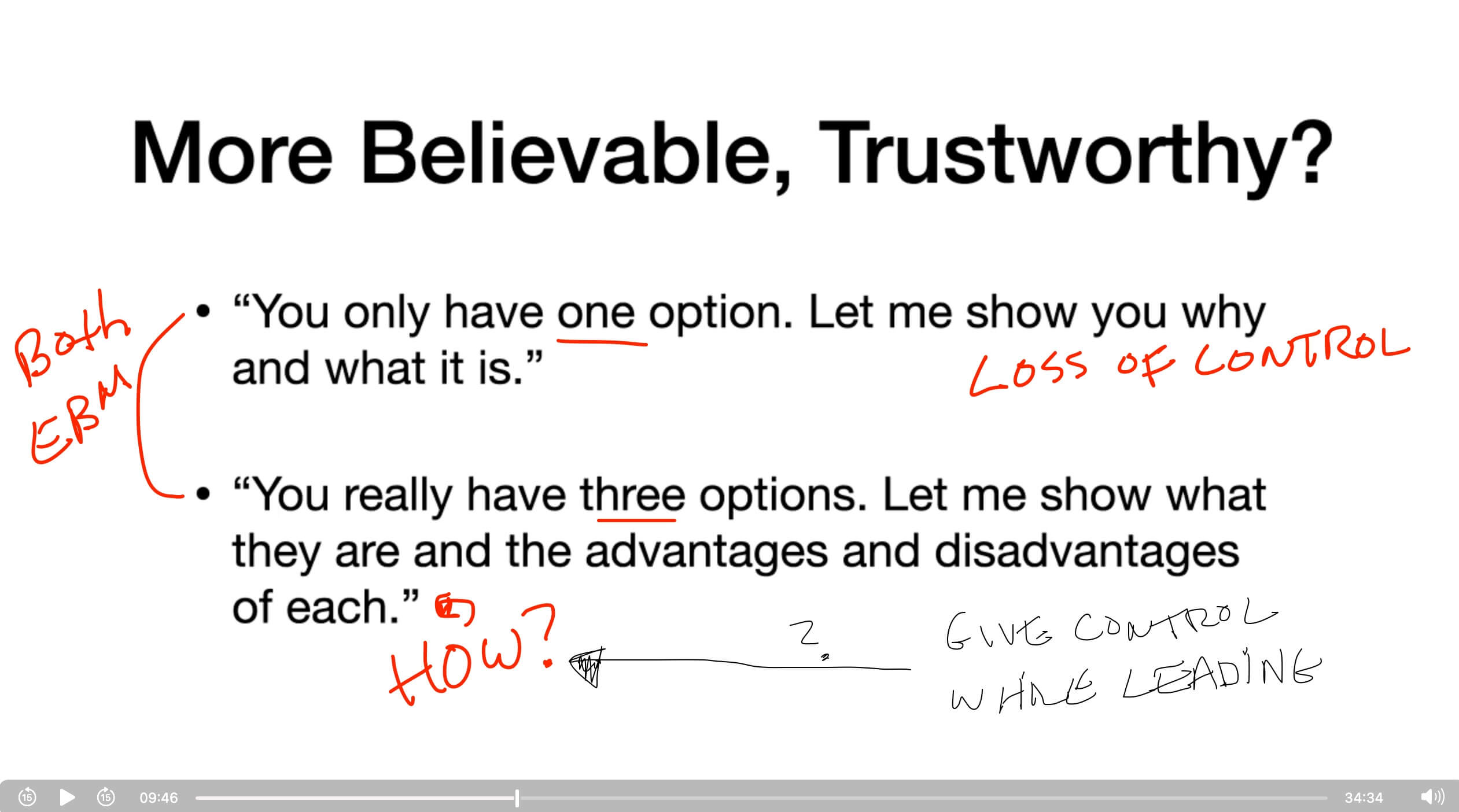 • Leading someone to a conclusion is not the same as blatantly trying to get someone to accept our conclusion or position. The latter is apparent and creates resistance. Leading someone is about giving them the information they need to make the decision on their own. We want to do this in our marketing. And it needs to be done strategically.